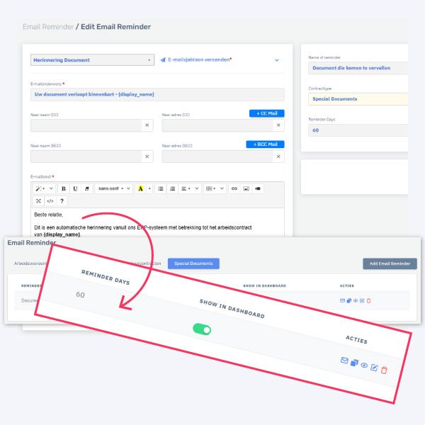 Onze HRM-module bevat álle functionaliteiten die MKB-bedrijven dagelijks nodig hebben. Je vervangt hiermee Excel, losse tools en papieren contracten door één overzichtelijk en veilig HRM-systeem.